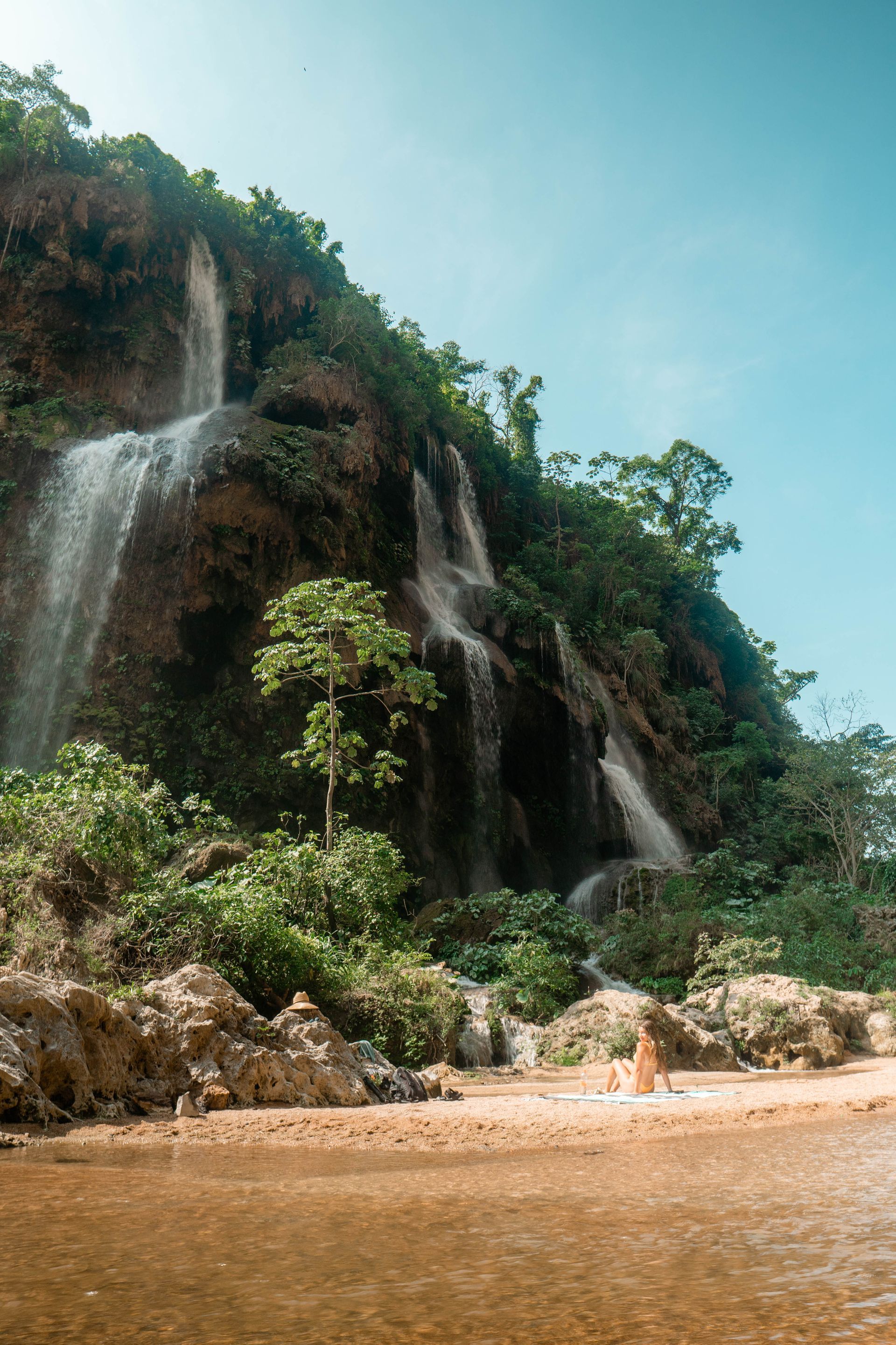 The adventure continues when we reach the base of the canyon as we follow an overgrown trail eager for our first glimpse of the falls. We can hear them, and when I push past a medley of large deep green leaves zesty with cobwebs, I can feel it. Above us a beautiful shower gifted from natures builder falls into pools and spreads along the canyon. We lay our blanket on a sand bar and take a moment to feel extremely small. The mist from the falls tickles our cheeks as we lay and watch birds soar back and forth through the canyon walls. A crystal clear and refreshing cold river curves through the canyon holding an ecosystem of its own. Where the jungle meets the desert. Walls lined with cacti and sand squeezing through our toes coexist with lush pockets of green where bugs are vocal, iguanas enjoy a bath and birds flutter through fruit trees. Our skin enjoys drinking up the cold water for some time until our stomachs announce it’s time to leave. Up we go.