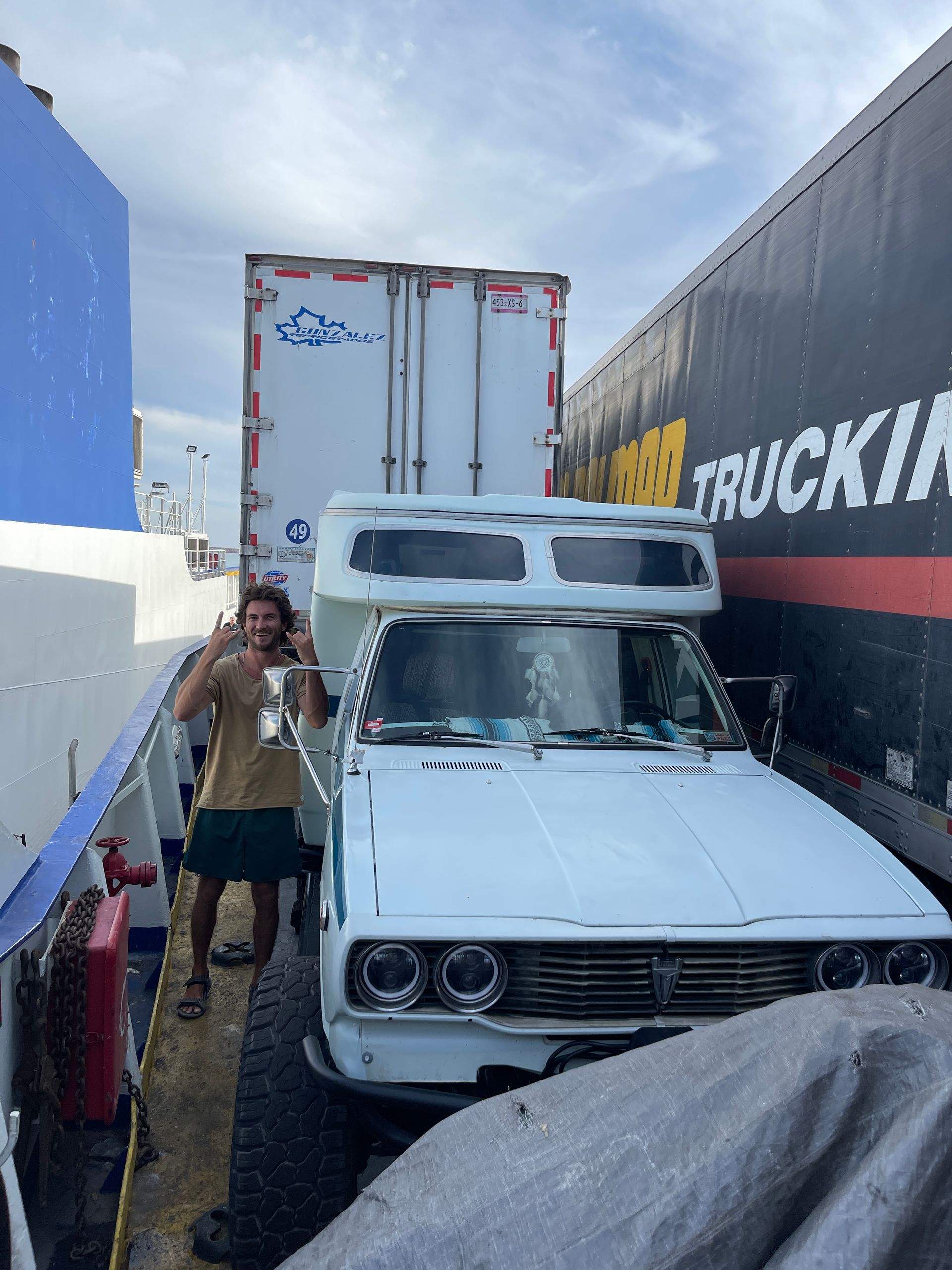 The air on the top deck reeks of truck exhaust, brake pads and an assortment of either fruit trying to make its last attempt at an escape, or the fish hanging out of the lingering seagull’s mouth. Men are dancing around the main deck finishing up tasks, so we make our way into the single room communal kitchen. We are served tacos, and share brief interactions with some of the drivers. It’s special experiencing the every day life side of this journey for some of these men, and as the roar of the boat fills the cabin, we can’t help but breathe into our new reality.