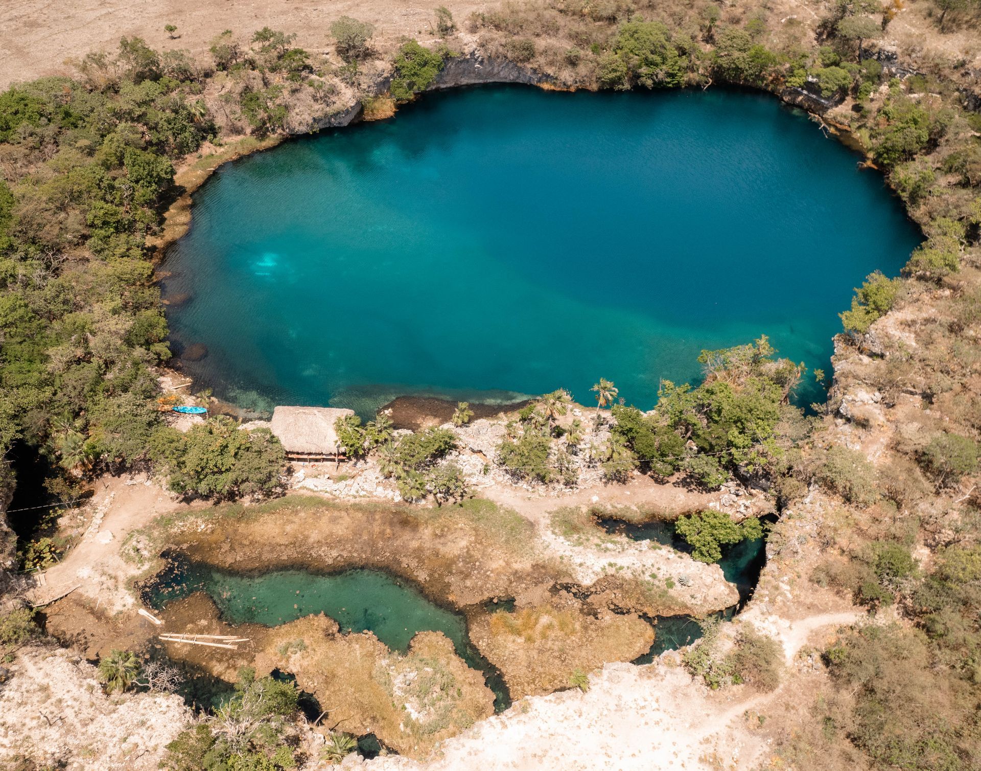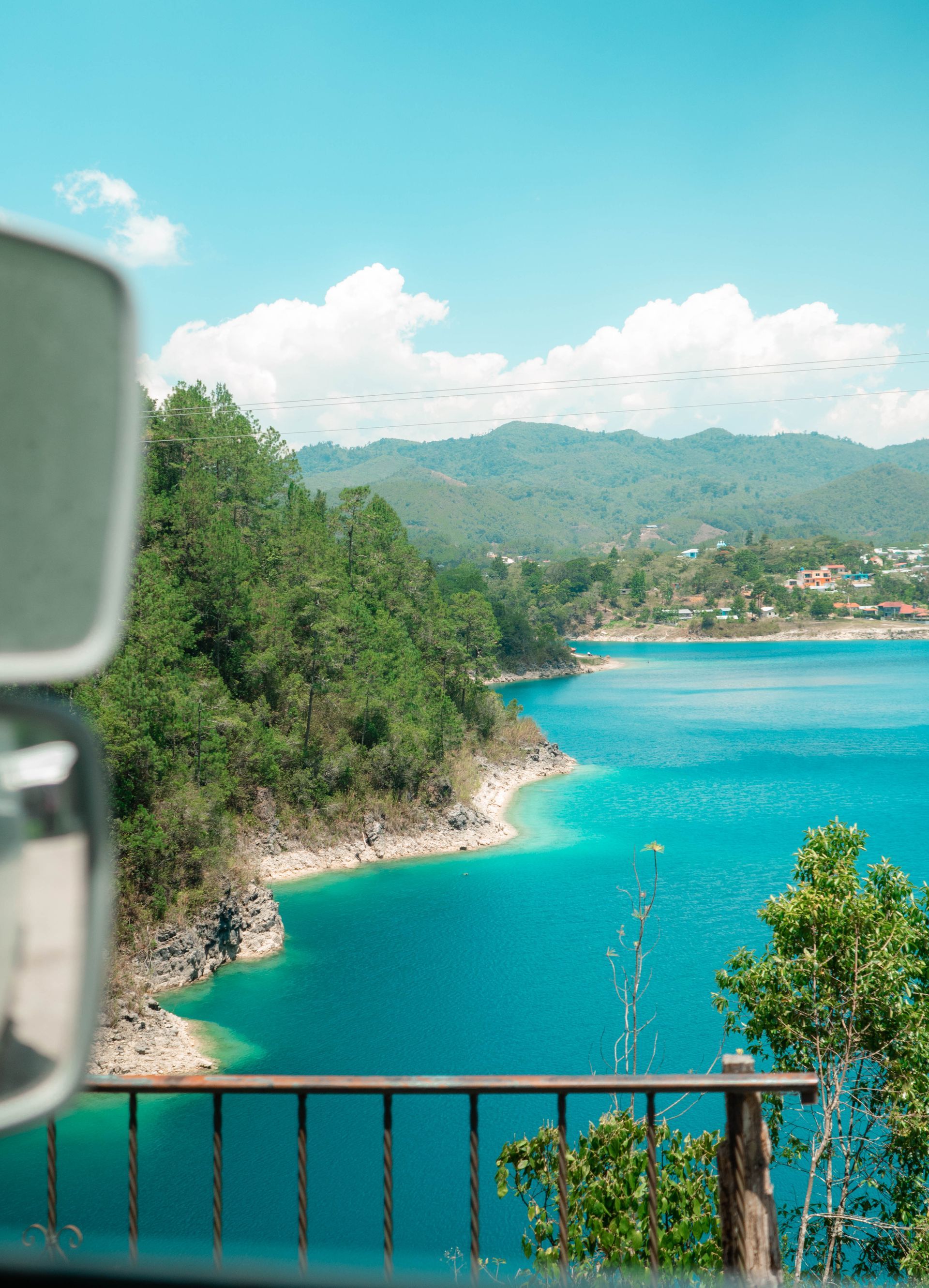 The door opens back up to reality and we're one with the heat again. Thankfully, our elevation is gaining and our nose is pointed towards you guessed it, more water. As we near Lagos de Montebello, we discuss how Mexico sure knows how to add an extra dose of saturation to its colour scheme. Whether it's the water doused with blues, the houses wrapped in a rainbow or the flowers that look like a 3D painting.