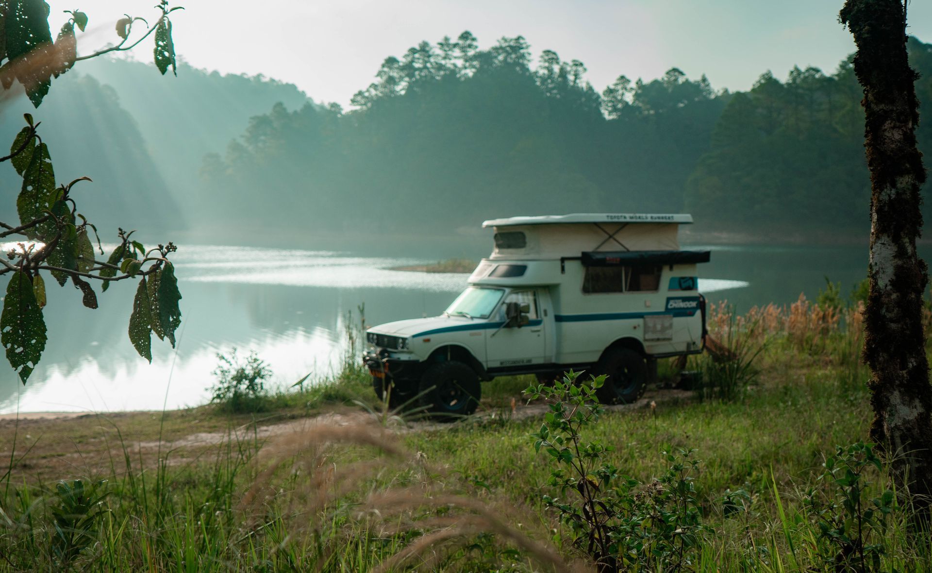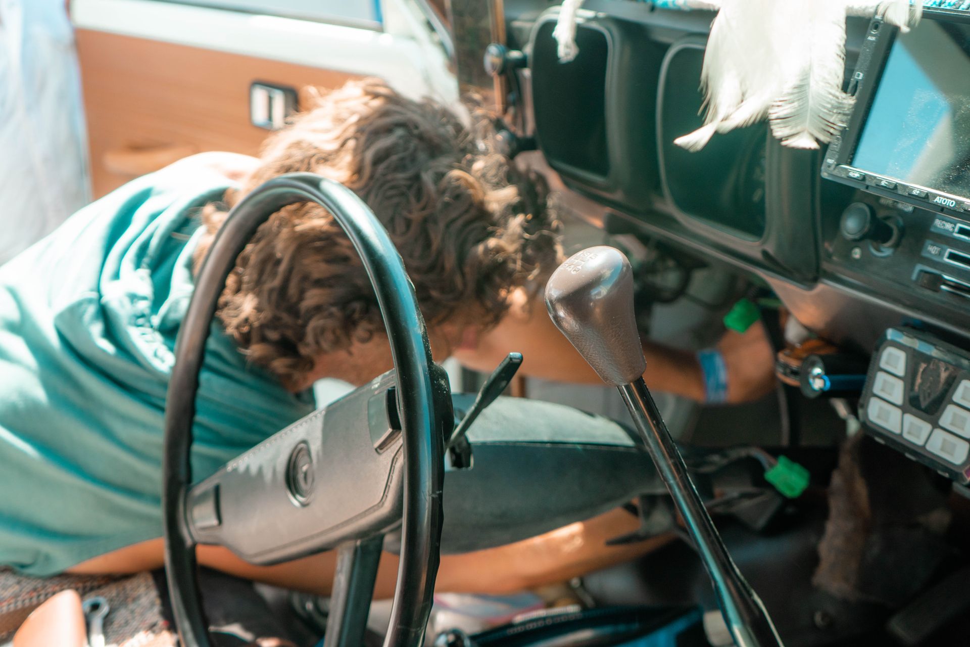 Although our evening was filled with entertainment, the night was quiet and the morning sun rays lit up the lake so beautifully we wish the sun would never move. We had an objective today, and that was to address the elephant that has been lingering in the cab of the Chinook since America. Our steering column that we half fixed on our way to Denver has finally called it quits. I must say, I'm proud it made it this far. We noticed a small mechanic shop not far from the lake with two Toyotas parked out front, and decide this is the place to get it fixed for good. Within ten minutes of our arrival at this man's home, the steering column is out and Matthew and the mechanic are deliberating. They decide that it needs a new bushing made which can be done a few kilometres down the road. The mechanic grabs his motorbike and Matthew gets ready to hop on the back. Hilariously enough, he points to the front and I watch Matthew light up in a nervous frenzy. I've never seen him ride a bike before so I'm also a nervous wreck. I wait for the two of them to take off, no helmets into the sunset, but watch the bike lurch to a halt and stall out. And again, and again. I've never met a more confident man, and a huge part of me wishes Matthew could have gotten the bike to start. Alas, the mechanic and his wife joyfully chuckled as they switched spots. I spent time conversing with Elena about life and her bar while the boys played trucks, and I'll never forget the kindness found in unexpected places. With the steering fixed, and new friends made, we promised to return and hit the dusty track again.